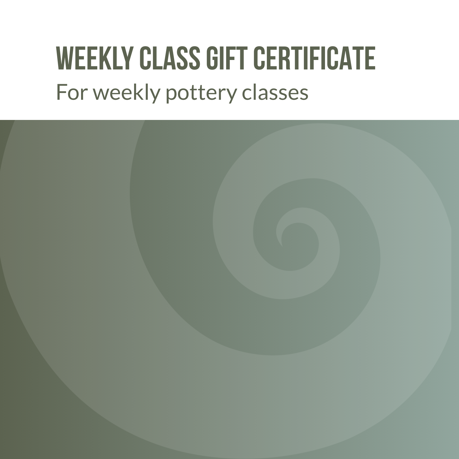This gift certificate is valid for our weekly pottery classes in the Teaching Center, where students learn foundational skills, build confidence, and deepen their relationship with clay in a supportive studio environment. Ideal for new students or those continuing their ceramics journey.